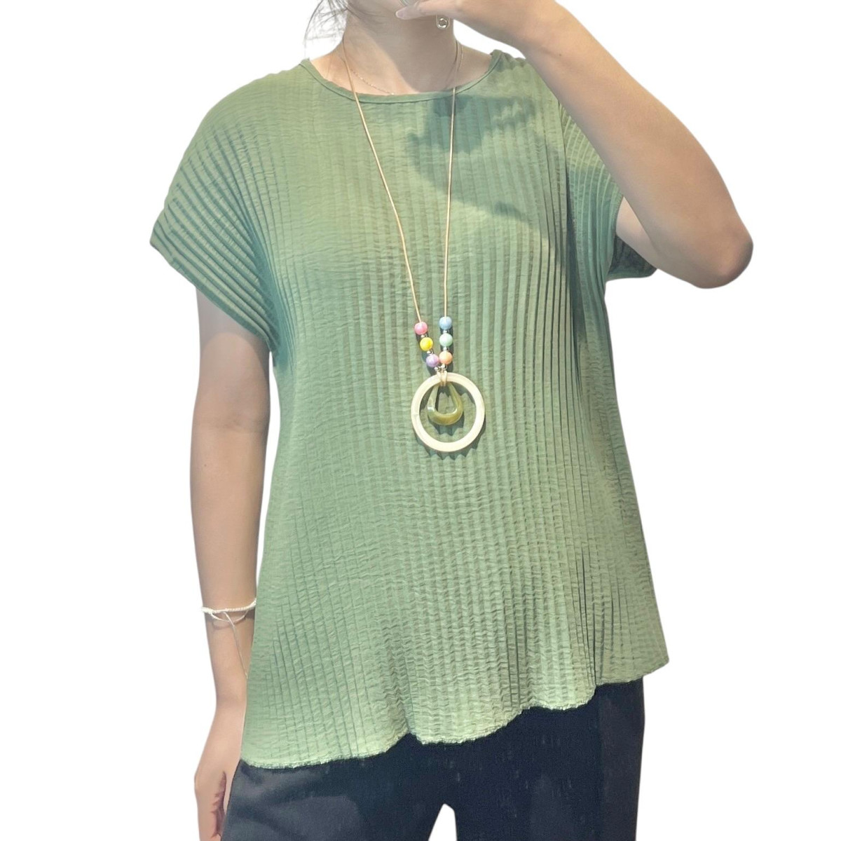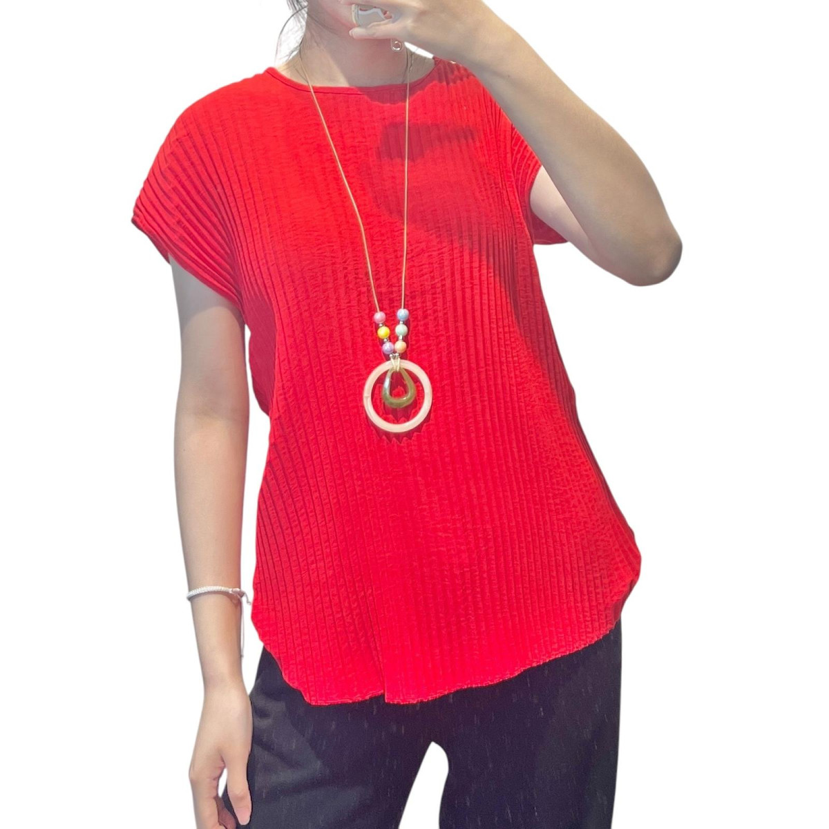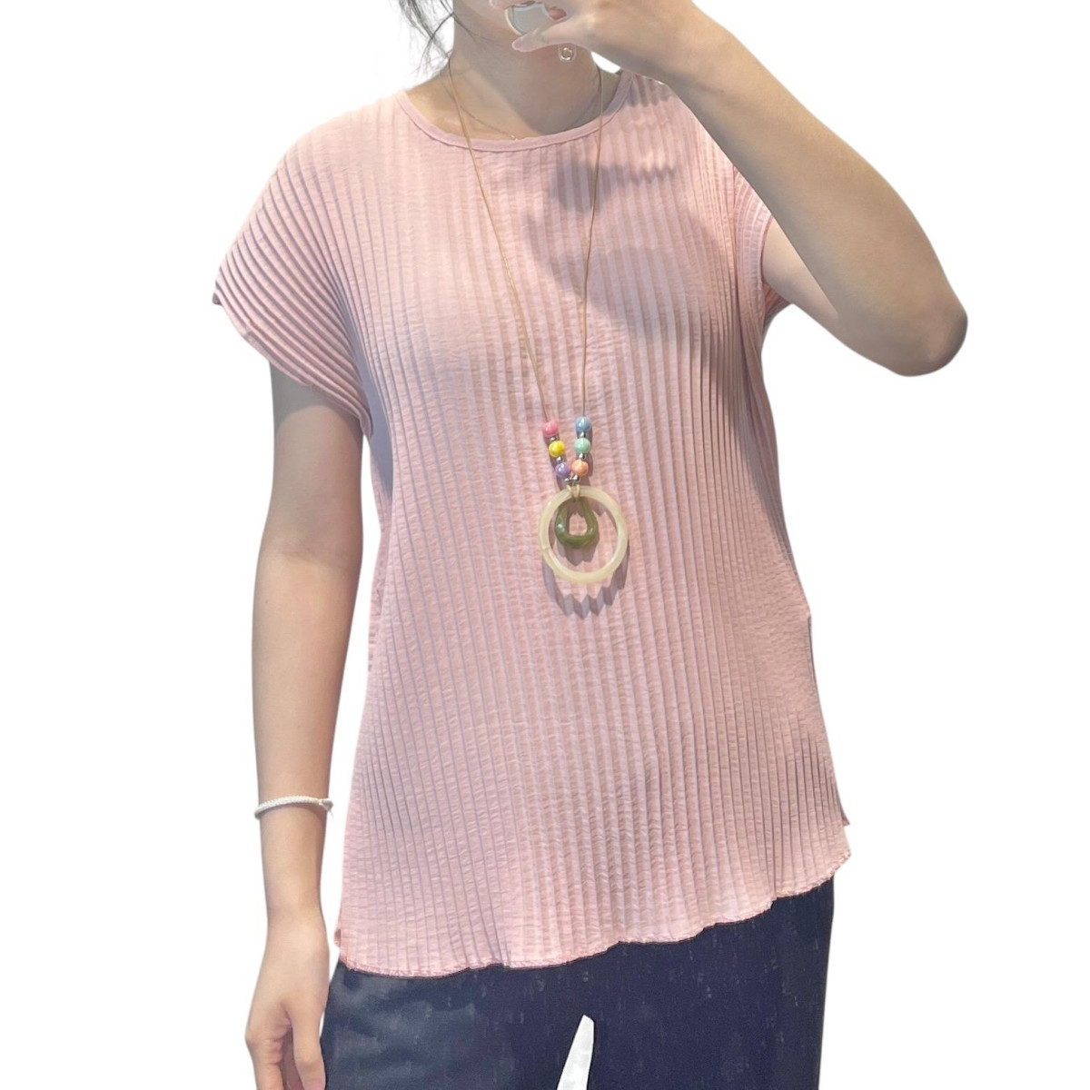 Ženska bluza rahel rebrast vzorec ,ki pomaga poudariti postavo.