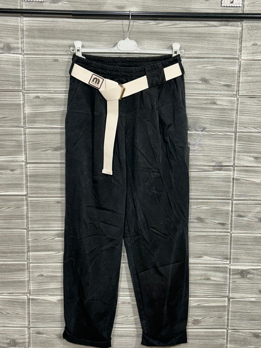 Ženske hlače iz prijetnega bombaža z žepi in z dodanim pasom .