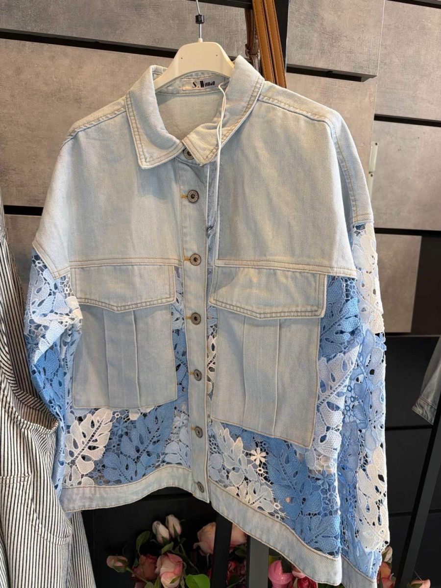 Ženska jakna iz jeansa modna dodano všito ima čipko .