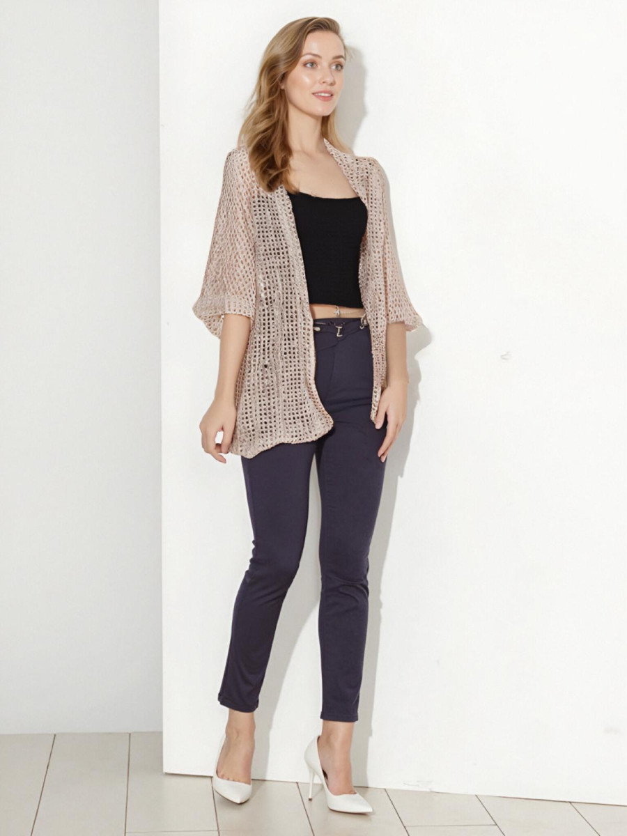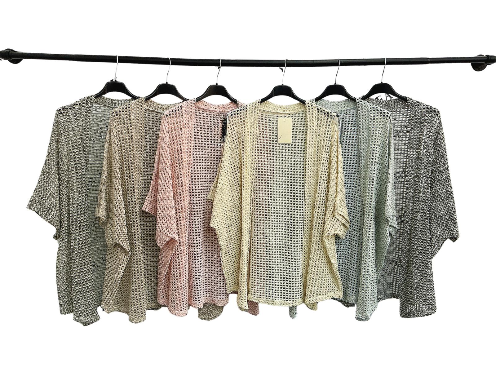 Ženska jopa z kratkimi rokavi mrežasta. Z všitimi zlatimi niti.